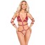 Extravaganter Body ouvert von Bad Kitty in Bondage-Optik aus weichen elastischen Riemen im edlen dunkelroten Mattlook. Mit Cups zum Öffnen (Druckknöpfe) und abnehmbarer Karabinerkette im offenem Schritt. Träger und Riemen mit Druckknöpfen passend verstellbar. 6 Fesselriemen für Hände/Arme mit Karabinerketten ? von den Ringen seitlich am Body abnehmbar. Schmale Fesselriemen mit verstellbaren Klettverschlüssen.