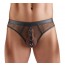 Betonender schwarzer Riostring von Svenjoyment aus luftigem Netzmaterial mit stylischen Details im angesagtem Wetlook. Mit 5 dekorativen goldfarbenen Ringen am zeigefreudigen Beutel. Der Netz-Rio ist rundum elastisch und weich anschmiegsam für hohen Tragekomfort.