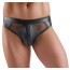 Knackiger schwarzer Slip von Svenjoyment im angesagten Wetlook mit transparenten Netzeinsätzen vorne. Im blickdichten Beutel mit Reißverschluss. Rundum weich und elastisch und mit bezogenem Bundgummi für höchsten Tragekomfort.