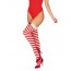 Halterlose Strümpfe von Obsessive im rot-weißen Ringel-Look. Mit roter Satinschleifen-Verzierung jeweils vorn. Aus weicher anschmiegsamer Mikrofaser mit hohem Tragekomfort.