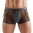 Betonende schwarze Pants von Svenjoyment aus zeigefreudigem Netzmaterial im Mix mit angesagtem Wetlook. Mit Reißverschluss im blickdichten Beutel. Rundum elastisch und weich anschmiegsam für hohen Tragekomfort. Dekorative goldfarbene Ringe jeweils vorne seitlich und hinten am Bund. Die beiden goldfarbenen Karabinerketten sind abnehmbar.
