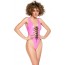 Knapper Lack-Body von Black Level in Knallfarbe Pink. Vorne und hinten tief ausgeschnitten ? jeweils mit schwarzer Schnürung durch silberfarbene Metallösen. Die langen Bänder können individuell geschnürt werden. Dazu extra hohe Beinausschnitte, die Po und Schenkel attraktiv in Szene setzen.