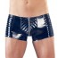 Figurbetonte Pants im exklusiven Biker-Style. Aus glänzendem Lack mit markanten Absteppungen und einem unterlegtem Metallreißverschluss in der Front.