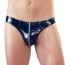 Klassischer schwarzer Slip aus längs- und querelastischem 4-Wege-Stretch-Lack mit unterlegtem Front-Reißverschluss aus silberfarbenem Metall. 94% Polyester, 6% Elasthan, mit Polyurethan-Beschichtung.