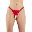 Scharfer String mit Lackdreieck in der Front. Im Schritt offen und hinten nur elastische Bänder, damit der Po frei liegt. Rot. 100% Polyester mit Polyurethan-Beschichtung.