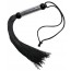 Schwarze Minipeitsche mit weichen Silikonriemen und Kunststoffgriff. Gesamtlänge 26 cm. Silikon, Griff: Polychlorid (Vinyl).