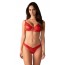 Set Aliosa von Obsessive mit Bügel-BH und Riostring. Verführerischer Style in sinnlichem Rot mit edlem glatten Glanz und feiner transparenter Floral-Spitze. Rundum weich und elastisch für hohen Tragekomfort. BH mit dezentem goldfarbenen Schmuckdetail zwischen den Bügel-Cups und an einem Träger. Die Träger und der Hakenverschluss im Rücken sind passend verstellbar.