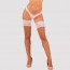 Halterlose Strümpfe Heavenlly von Obsessive in seidiger nudefarbener Transparenz. Mit breitem weißem Blütenspitzen-Abschluss, mit Silikon verstärkt für rutschfesten Sitz.