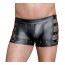 Schwarze Pants von NEK im betonenden Mattlook mit unterlegtem Front-Reißverschluss zum Öffnen. Jeweils seitlich transparente Netz-Einsätze mit nietenverzierten Riemen darüber ? der untere Riemen führt komplett um den Oberschenkel. Rundum weich und elastisch für höchsten Tragekomfort.