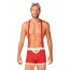 Weihnachtliches Set Mr. Claus von Obsessive bestehend aus Hosenträger-Pants und Mütze. Weich anschmiegsame elastische Pants in Rot mit weißen Details. Vorne und hinten Dreieck-Cut-out am Bund, vorne zusätzlich ein kleines Schmuckelement. Die Hosenträger sind fest an der Pants angenäht und passend verstellbar. Rote Weihnachts-Mütze mit weißem Plüschbesatz und -Bommel.
