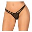 Schwarzer String Chemeris von Obsessive aus weicher elastischer Spitze. Betonender Schnitt mit stylischen Riemchen und kleinem Schmuckelement vorne am Bund.