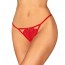 Schöner String ouvert Ingridia von Obsessive aus roter feiner Spitze. Weich und elastisch für hohen Tragekomfort. Vorne am schmalen Stretchbund mit kleinen Cut-outs und kleinem Schmuckelement. Im Schritt einladend offen.