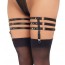 Schwarzes Dreifach-Strumpfband von Cottelli ACCESSOIRES mit abnehmbaren Strapsen. Aus weichen Stretchriemen mit edlem Glanz. Mit silberfarbenen Ringen und Strassstein-Verzierungen. Rundum verstellbar für perfekten Halt. Auch die abnehmbaren Strumpfhalter sind passend verstellbar.
